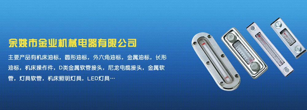 余姚市金業(yè)機(jī)械電器有限公司主要產(chǎn)品有機(jī)床油杯,圓形油標(biāo),外六角油標(biāo),金屬油標(biāo),長形油標(biāo),機(jī)床操作件,D類金屬軟管接頭,尼龍電纜接頭,金屬軟管,燈具軟管,機(jī)床照明燈具,LED燈具,DGT型線路軟管防護(hù)套,TL型鋼制電纜手軌,電纜尼龍拖鏈,可調(diào)塑鋼冷卻管等產(chǎn)品,規(guī)格齊全,全部自制。望國內(nèi)外客戶前來考察:共同發(fā)展…